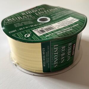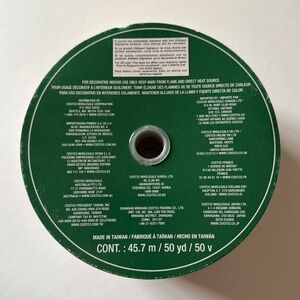 This ribbon is 2-sided reversible. One side is shiny gold and the other is shiny silver. 50 yards in a continuous roll with no seams, 2.5” wide. Wire edging makes it easy to shape as desired. 87% metallic, 13% polyester. New product in unopened packaging.
