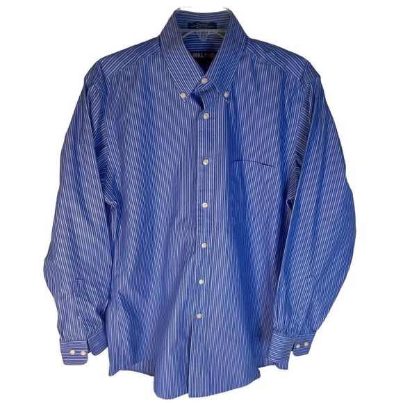 Kirkland Signature Shirt Mens 15.5 33 Blue & White Stripe Long Sleeve Button Up