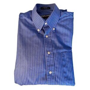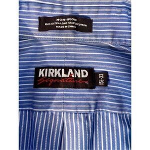 Kirkland Signature Shirt Mens 15.5 33 Blue & White Stripe Long Sleeve Button Up