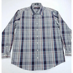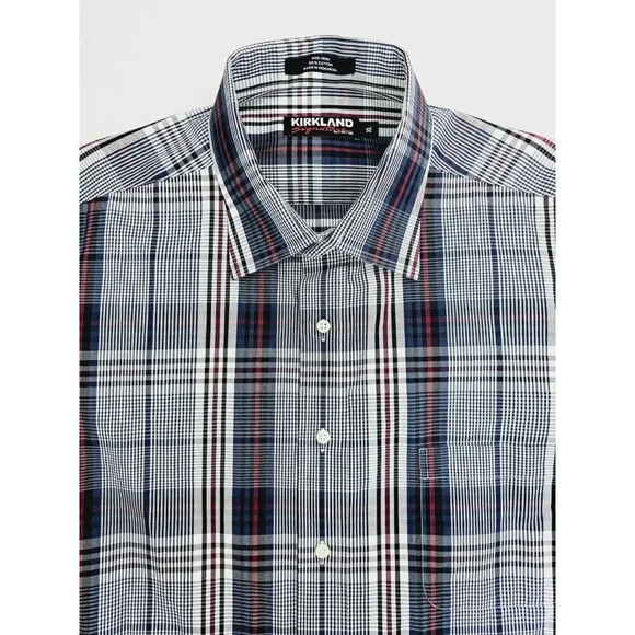 Kirkland Signature Size XL Men's White Burgundy Black Check Long Sleeve Shirt
