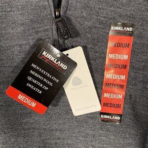 Kirkland Signature Sweater Men's Medium Extra Fine Merino Wool 1/4 Zip Gray