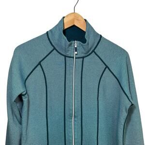 Kirkland Signature Women’s Reversible Full Zip Jacket Teal Green Striped Casual