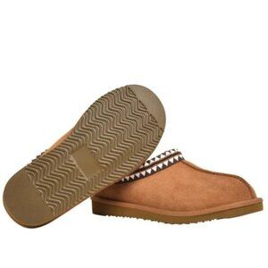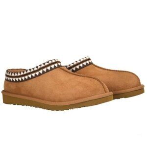 Kirkland Women 10 Suede Sheepskin Slip-on Shearling Slippers Embroidered Shoes