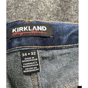 Kirkland signature men’s denim dark blue jeans sz 34 x 32 frayed hem
