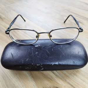 💜Kirkland Dark Shiny Gun Manchester Wire Rimmed Eyeglasses & Hardshell Case