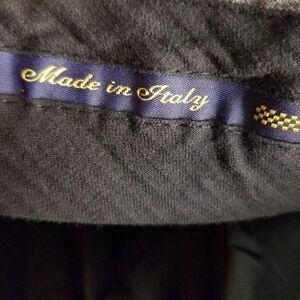 Gray color, straight leg, belt hoops, front and back pockets, button and zipper closure, cuffed hem. Made in Italy