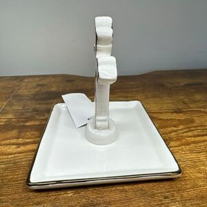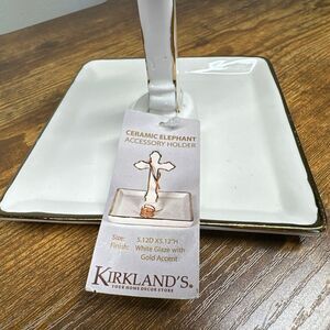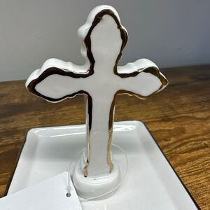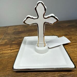 Kirklands Cross Ceramic Accessory Holder Trinket Dish White Glaze Gold Accents NEW with tags