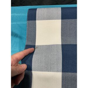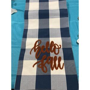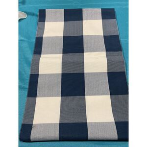13" X 84" gorgeous navy and cream checked with brown embroidery. Gently preowned, see pics for condition as there are a couple of spots.