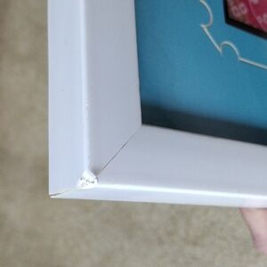 Adorable owl picture in blues. pinks and purples. See pics closely for a few barely noticeable scratches on the frame. Perfect for a child's room! See last pic for measurement.