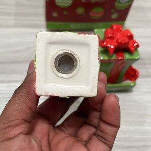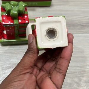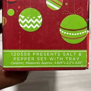 Kirkland's Salt Pepper Set with Tray Christmas Present Red and Green Never Used