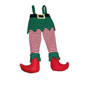#door hanger #elf #legs #stuffed #decoration #indoor #stripe #red #green #Kirkland #new #Christmas #holiday