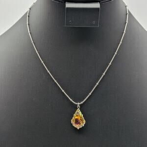 Kirks Folly AB Crystal Pendant Silver Tone Beaded Chain 16"-18" Necklace