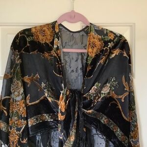 Kirks Folly Beaded Garden of Black Mist Open Front Wrap Poncho OS