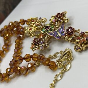 Kirks Folly Mother Earth Cross Pin/Pendant With Aura Autumn Beaded Necklace