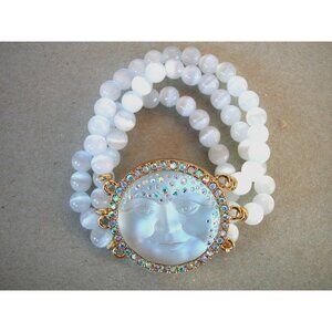 Kirks Folly Seaview Moon Bracelet White Rhinestone Crystal Bead Stretch RARE