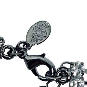 This Kirks Folly necklace exudes an antique charm, showcasing a beautiful array of aurora borealis and clear rhinestones. The intricate design and silver-tone setting evoke a sense of timeless elegance, reminiscent of a bygone era. It’s a striking piece that can elevate any outfit with its captivating sparkle and vintage allure.