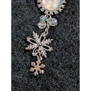 Kirks Folly Snowflake Brooch With Moon Face Rhinestones & Dangling Charms