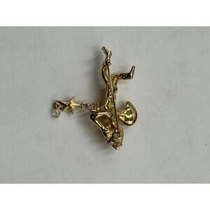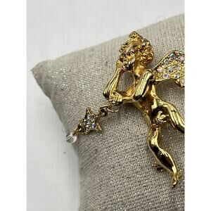 Kirks Folly Two Angel Cherub Star Crystal Gold Tone Pin Brooch