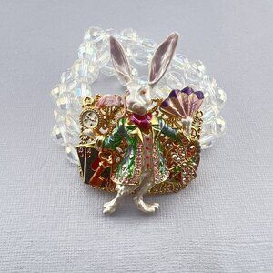 RARE and VERY HARD TO FIND - Kirks Folly White Rabbit Alice in Wonderland Bracelet Crystal Stretch Enamel
