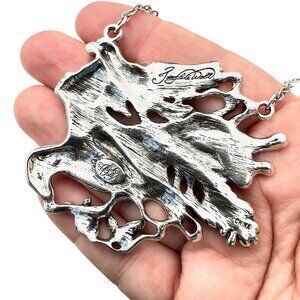 A stunning Kirks Folly necklace featuring Josephine Wall's Spirit of Flight design. This silver-tone accessory adds a mystical touch to any outfit, perfect for those who appreciate whimsical artistry and beautiful craftsmanship.