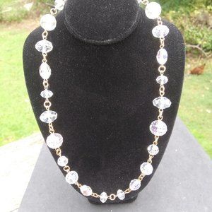 Kirks Folly sparkling Aurora Borealis ( AB) Necklace choker . Has a beautiful subtle Iridescence sparkle. ~ 17" long with a ~ 3" extender with a tiny gold star at the end. Also has the Kirk's Folly gold tag still attached. Measuring tape and a dime in pics above to help visualize size. Questions are always welcome. Honestly my pictures do not do this piece justice . There is a video to help show the sparkle .. The day was over cast here when I took pictures. Wear it alone or layer it .... beautiful piece . These have a nice weight. I liked to wear it more as a choker by itself. However I also wore it with multiple long necklaces , gold, pearls.