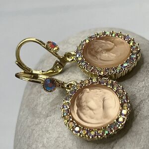 Kirks Folly Goddess Dream Angel Lever-back Earrings Peach with Aura Borealis Cry
