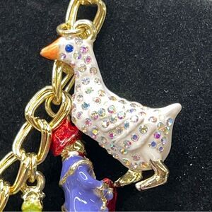 Holiday Classic A Christmas Carol by Charles Dickens has inspired this whimsical charm bracelet by Kirks Golly Gold Tone Colorful Enamel and Swarovski Crystals