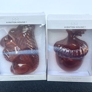 Kirkton House Squirrel and Acorn Glass Bud Vases
