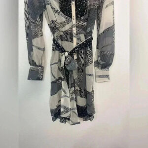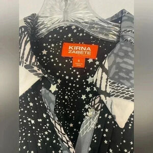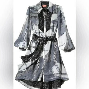 Kirna Zabete Animal Print Star Print Mixed Media Button Down Dress