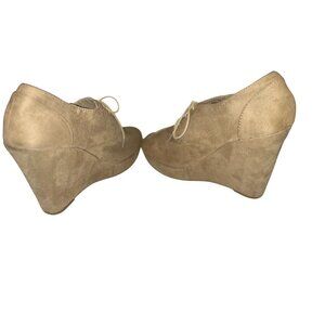 Kirra Faux Suede Vintage Lace Up Wedge in Beige Size 7