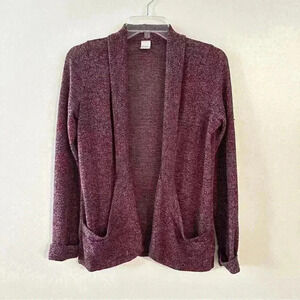 Kirra Purple Open Front Cardigan Sweater Size Large Long Cuffed Sleeve Pockets