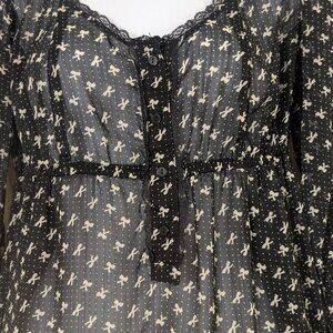 Kirra Sheer Babydoll Henley top Bows Whimsigoth Fairy Twee S Lace Dark Romantic