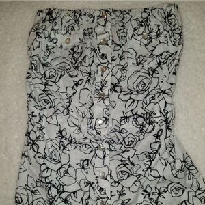 Strapless top with floral design. Snap flap chest pockets. Pearlized buttons down the front. Tie waist. Elastic band at the top for support.