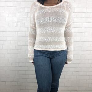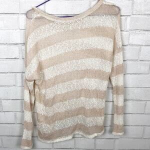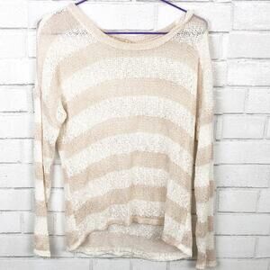 Kirra Striped Long Sleeve Scoop Neck Sheer Metallic Open Knit Sweater Size S/M