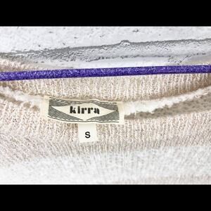 Kirra Striped Long Sleeve Scoop Neck Sheer Metallic Open Knit Sweater Size S/M. See-through, sparkly, multi-Color sweater in size Small/M. Model is a size medium. Long sleeves. Wide scoop-neck. Hi-lo hem. Perfect for both casual and dressy occasions.