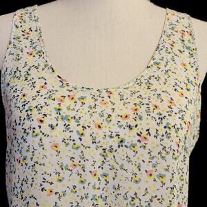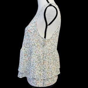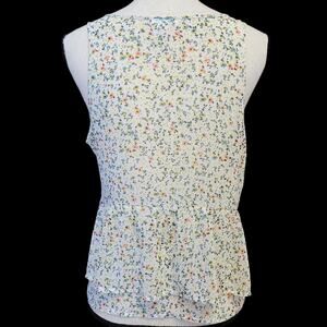 Kirra Tank Top Sz M Floral White Pink Blue Yellow Ditsy Ruffle Blouse Sleeveless