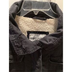 Kirra Womens Chore Field Military Button Up Jacket Sz L Muted Black Fur Lined