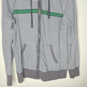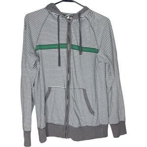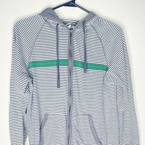 Kirra Women's Jacket Gray, White, Green Striped Hoodie Zip Up Size Small