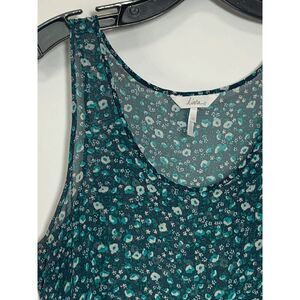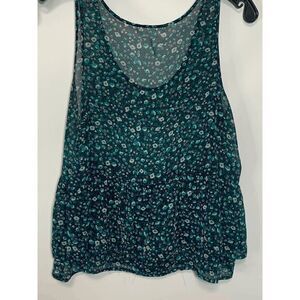 Kirra Women's Sleeveless Ditsy Floral Scoop Neck Sheer Peplum Blue Top Size S