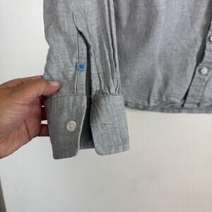 Kirrin Finch Androgynous Button Down Shirt Elbow Patch Gray Womens - 10
