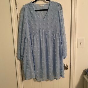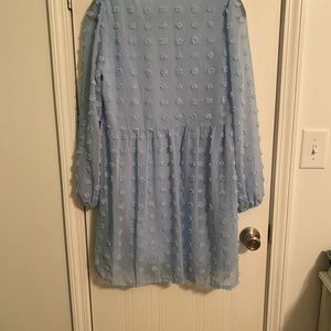 Baby blue long sleeve dress. Sleeves are sheer. Never worn. Small but runs a little large.