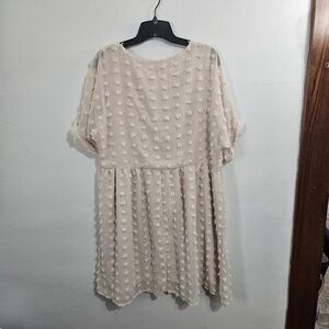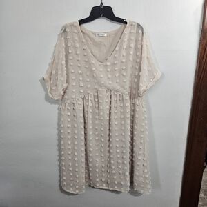 Kirmundo Babydoll Textured V-Neck Short Sleeve Sheer Dress Size Large Cream colored. Fully Lined. Excellent Condition.