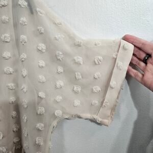 Kirundo Babydoll Textured V-Neck Short Sleeve Sheer Dress Size Large Cream