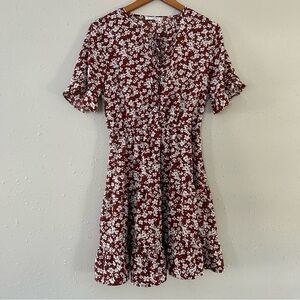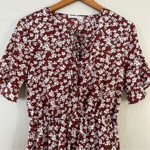 🦋 Kirundo Brown Blue Floral Short Sleeve Mini Dress Medium