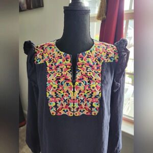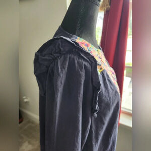 Kirundo Embroidered Floral Ruffled Long Sleeve Boho Dress Size Large