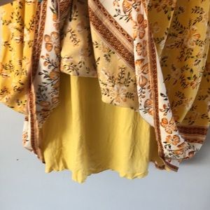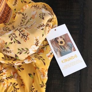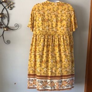 Kirundo Mini Dress Bohemian Short Sleeve Size Large Mustard Floral New