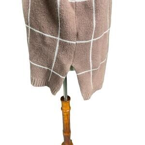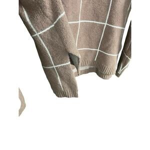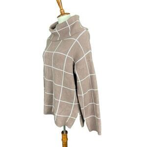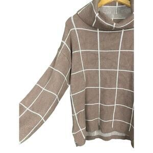 Kirundo Sweater Women XL Caramel Brown Window Pane Check Cowl Neck Soft Knit
