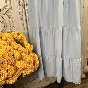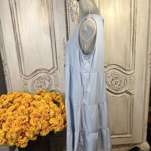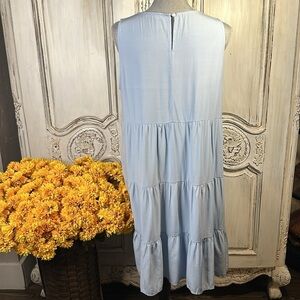 Kirundo Sweet Babydoll Tiered Soft Blue Sleeveless Dress Ballet core Fairy core