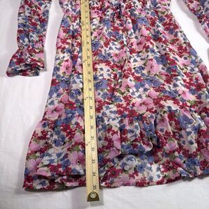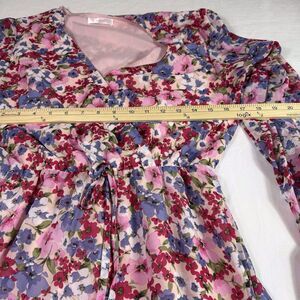 Kirundo Womens Dress Small Pink Floral Faux Wrap Ruffle Tiered Long Sleeve Flowy