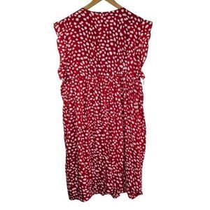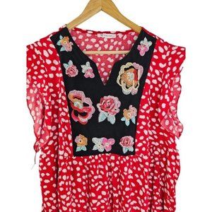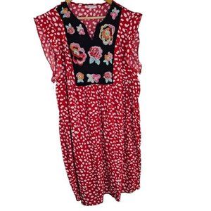Kirundo boho chic floral embroidered necklace ruffle red print dress Size XL